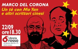 Cari amici, martedì 22 settembre, ore 18.30 alla libreria 6 Rosso (Via Alfredo Albertini, 6, 20154 Milano) Marco Del Corona presenterà il suo libro Un tè con Mo Yan. E altri scrittori cinesi. Una galleria di incontri con i maggiori scrittori cinesi, testimonianza diretta e multiforme di un paese in continua trasformazione.